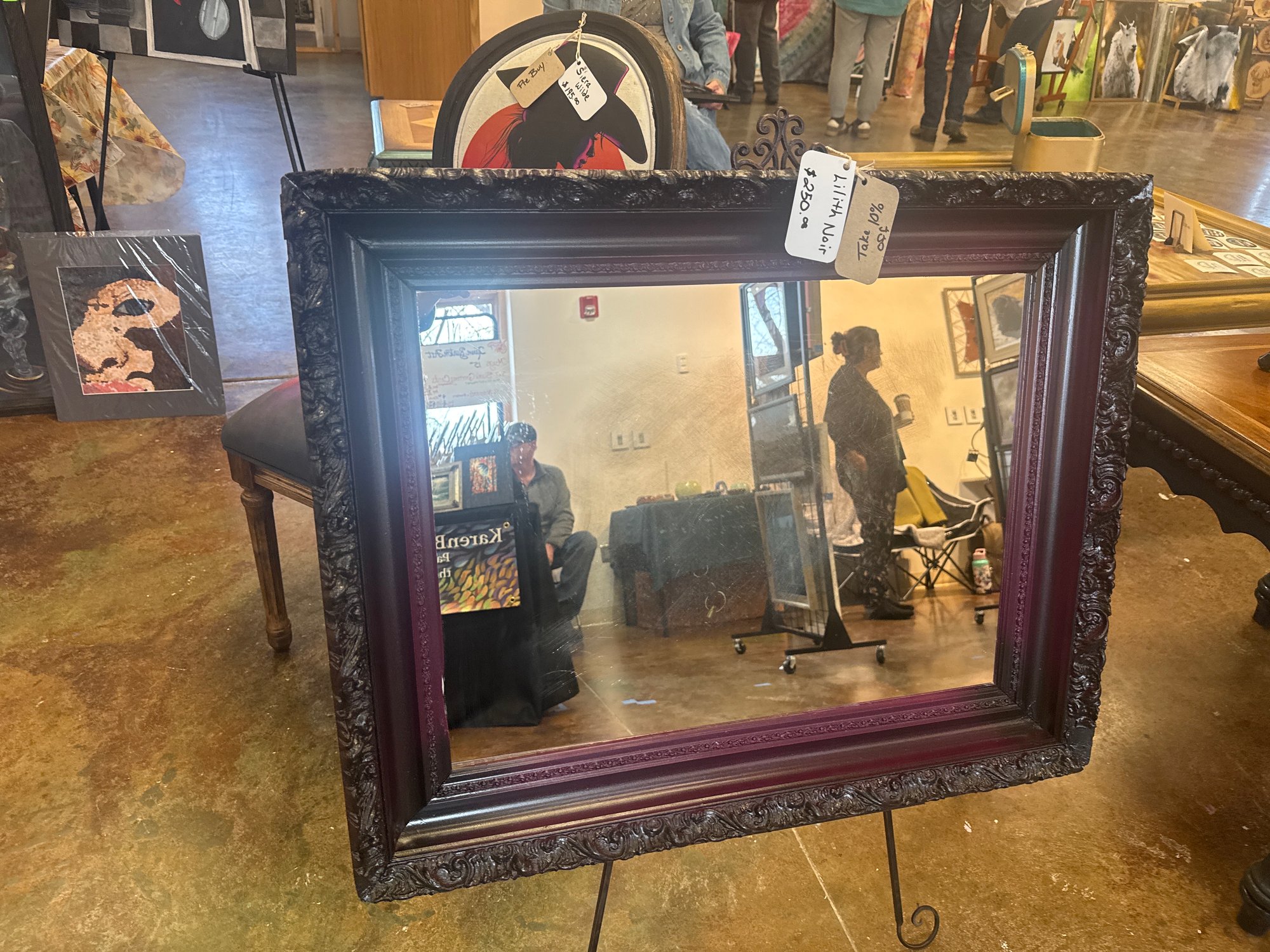The rich, dark wood or composite frame features deep, intricate carving and detailing, suggesting a Gothic, Victorian, or high-end antique style. The slightly distressed look adds character and history. Its size makes it a functional mirror as well as a striking piece of decor, helping to expand the perceived size and light in any room it graces. The darkness of the frame makes the reflection pop, bringing depth and drama. It pairs beautifully with both modern minimalist aesthetics for high contrast and traditional, richly decorated interiors.